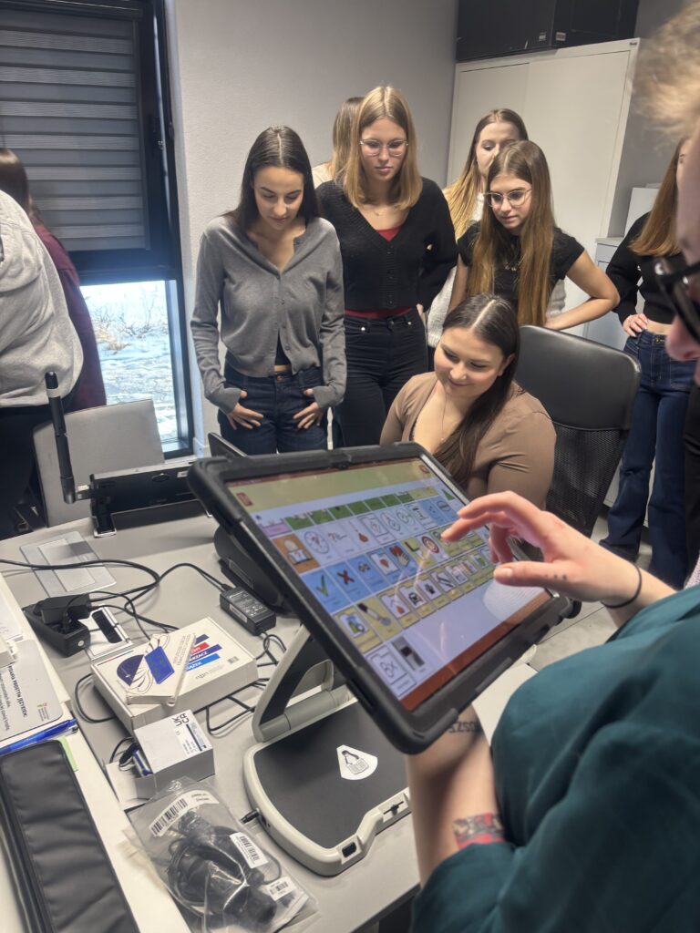Podczas wizyt zaprezentowaliśmy specyfikę funkcjonowania OWiT oraz szczegółowo omówiliśmy naszą ofertę skierowaną do osób z niepełnosprawnościami i ich otoczenia. Studenci mieli możliwość zapoznania się z zasadami działania Ośrodka, procesem doboru technologii wspomagających oraz praktycznym zastosowaniem dostępnych rozwiązań.